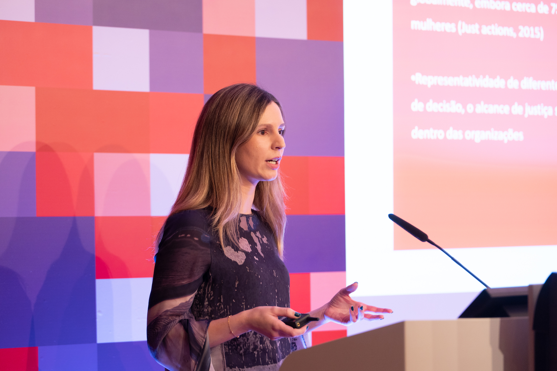 “Onde agir para assegurar a igualdade na liderança” foi a apresentação feita por Francisca Azevedo, da GFK, com um conjunto interessante de indicadores e de medidas promotoras de maior igualdade de género.